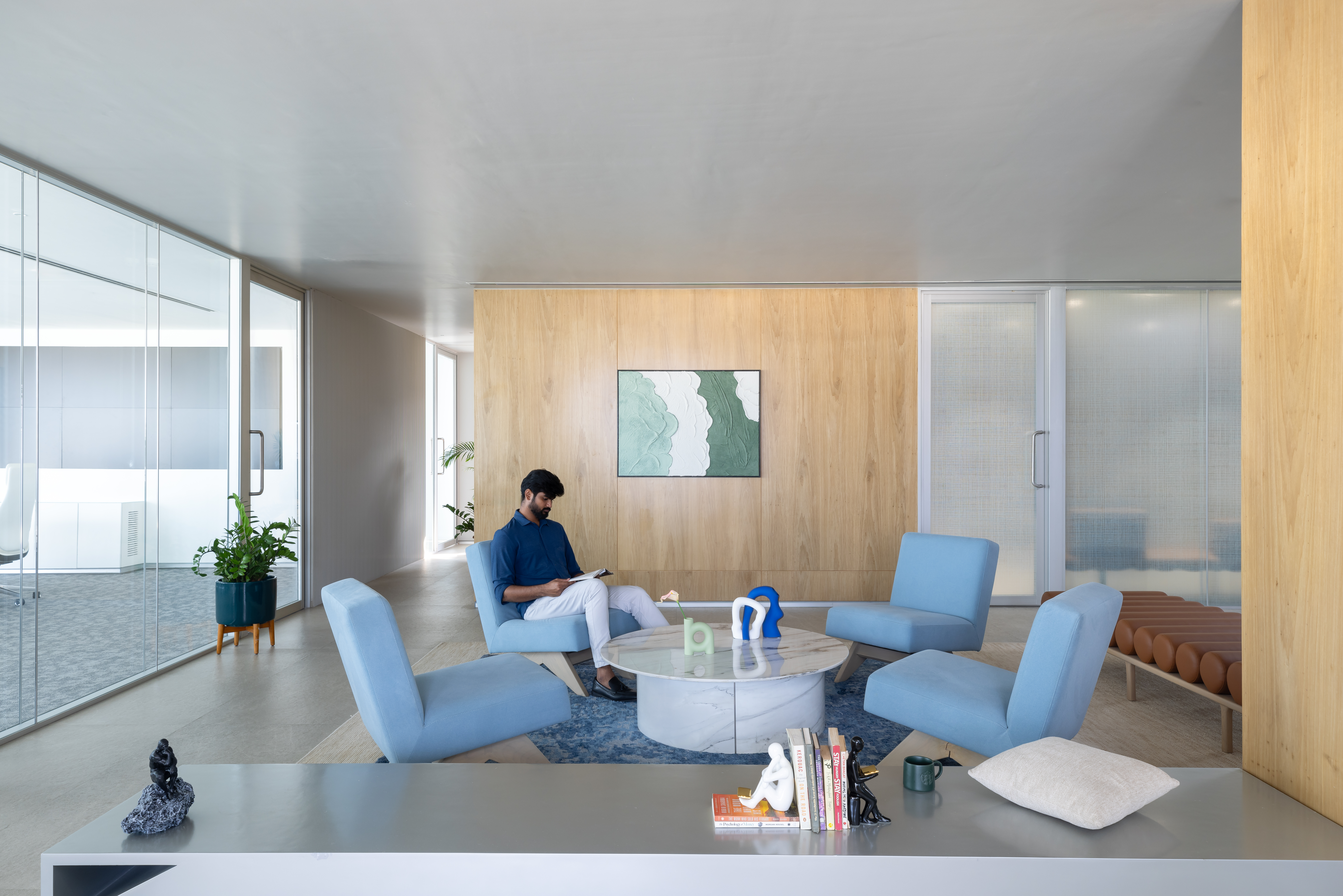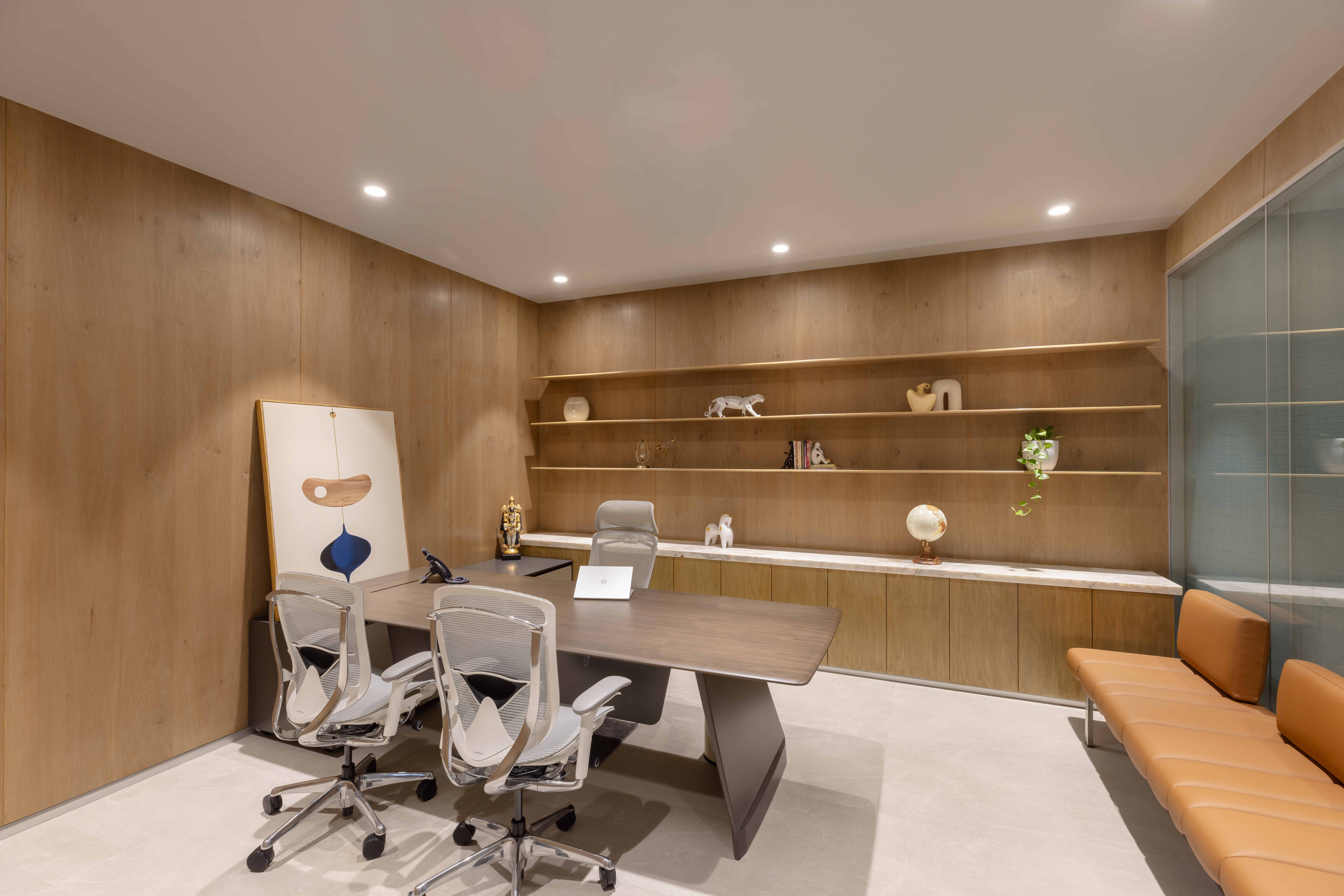 Rithwik’s Office embodies a refined vision of modern workspace design — understated, composed, and timeless. The design focuses on creating an atmosphere of calm authority through a subtle material palette and seamless detailing.